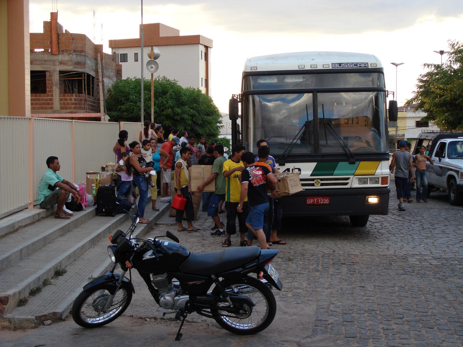 Todos os dias desse mês de Novembro até final de Dezembro centenas de ónibus chegam por dia trazendo aqueles que foram em busca de trabalho no Sul do País. A maioria vai para os cortes de cana e colheita de laranja e café. Passam de seis a dez meses depende da colheita. Muitos deixam para trás suas esposas, filhos, pais e tudo que eles adoram aqui no seu torrão. Tem deles que já levam a família inteira para aventurar mundo afora. Mas, como é bonito a chegada, alegria de pisar na sua terrinha querida, o encontro com os familiares, as compras que trazem, os presentes e o retorno ao lar. Vocês sim são "Verdadeiros Trabalhadores" e merecem o nosso "APLAUSO".MARQUINHOS CORAL